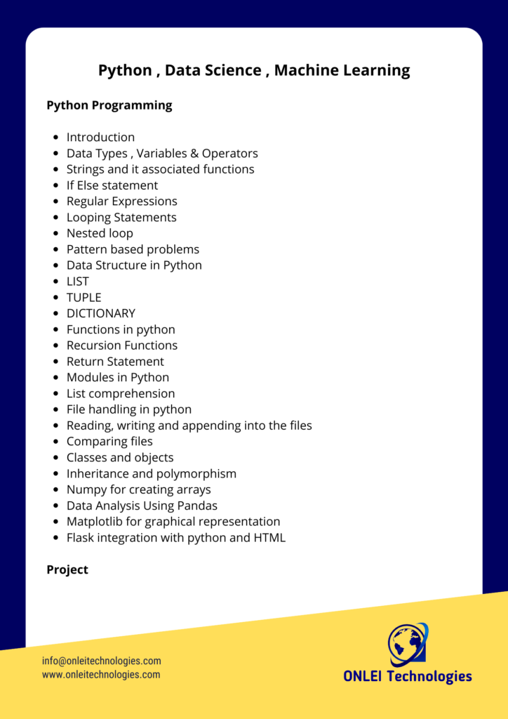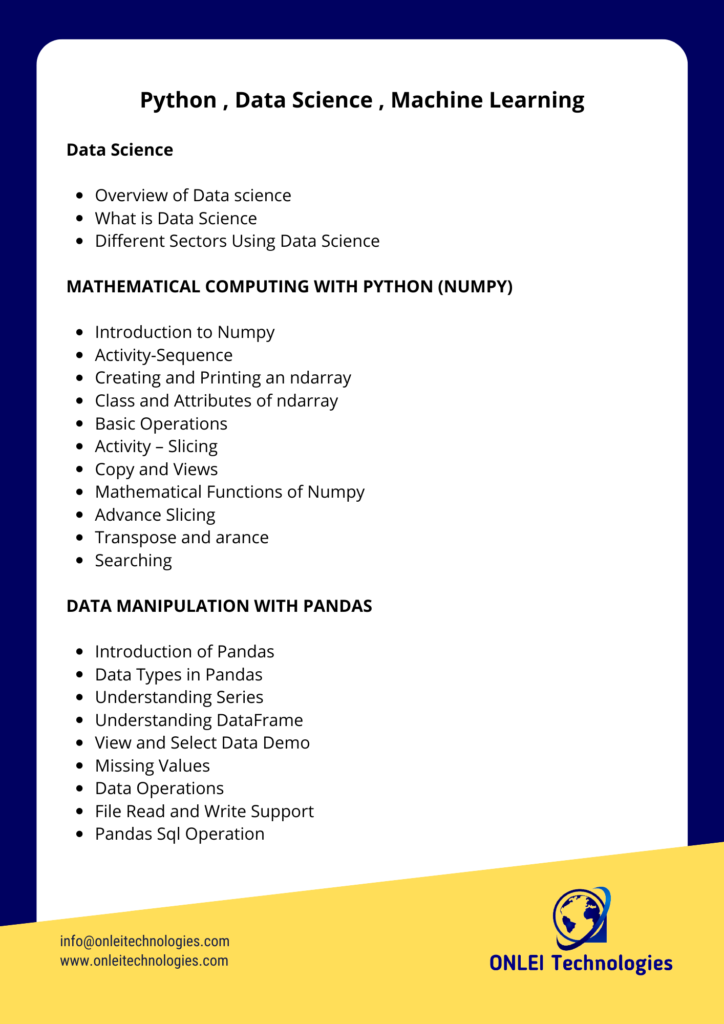 Data Science and Machine Learning using Python Course Content